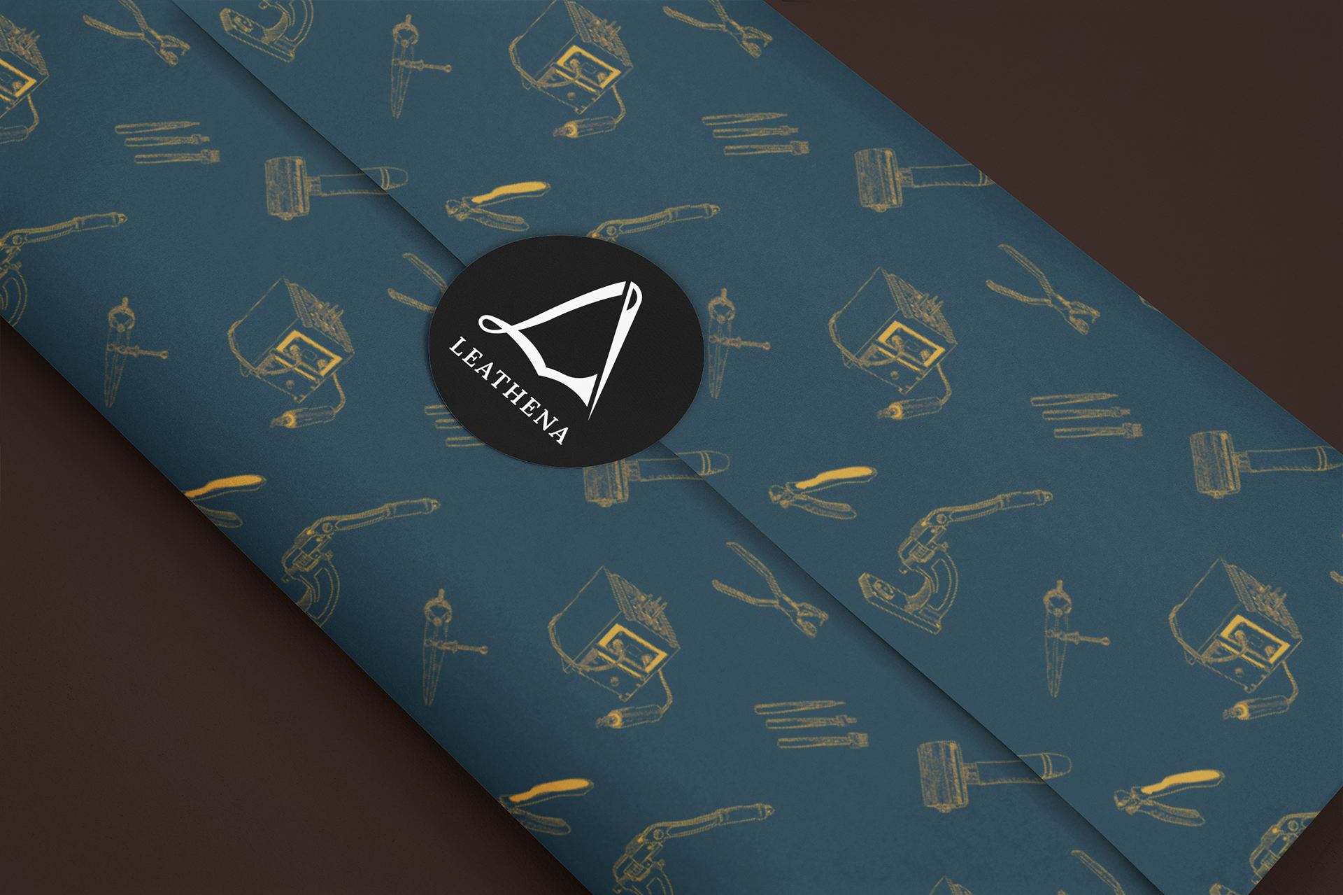 To enrich the brand’s visual identity, we created a custom pattern featuring vintage-style illustrations of traditional leather making tools. Each tool was carefully illustrated by hand to reflect the craftsmanship and authenticity at the heart of Leathena. Rendered in deep blue and gold tones, the pattern captures the spirit of artisanal work and timeless elegance. It adds a distinctive, character-rich layer to packaging, social media, and brand materials, reinforcing Leathena’s commitment to tradition, luxury, and refined artistry.
